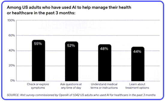 - Popular uses: symptom checks, decoding medical jargon, billing errors, and doctor visit prep.