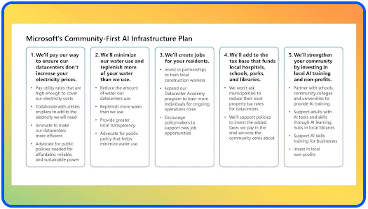 Brief Buzz: Microsoft just unveiled "Community-First AI Infrastructure," a plan aimed at easing growing local backlash against AI data centers. As demand for AI computing explodes, the company is promising to shoulder more of the environmental and economic burden itself. - Microsoft says AI data centers won't raise local power bills, asking utilities to charge rates that fully cover energy costs