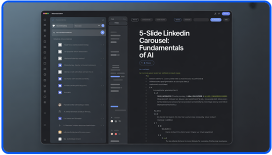 "Write a 5-slide LinkedIn carousel on '(your topic)'. Slide 1: A hook. Slides 2-4: One tip each. Slide 5: A CTA. Keep each under 40 words" This step ensures your structure, flow, and word count are optimized from the start. - Inside Canvas, refine your content for clarity and tone. Once satisfied, activate Canva by entering: